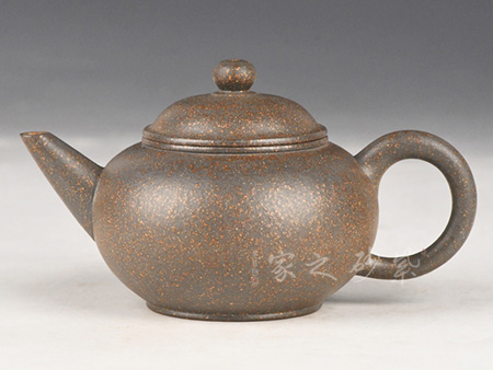 特点:块状中有青绿色的"鸡眼"、"猫眼"、色呈偏紫泛青,细而纯正, 十分稀少.烧成的壶呈现 红猪肝色,烧成颜色具体要看矿料的成分构成和烧成温度。