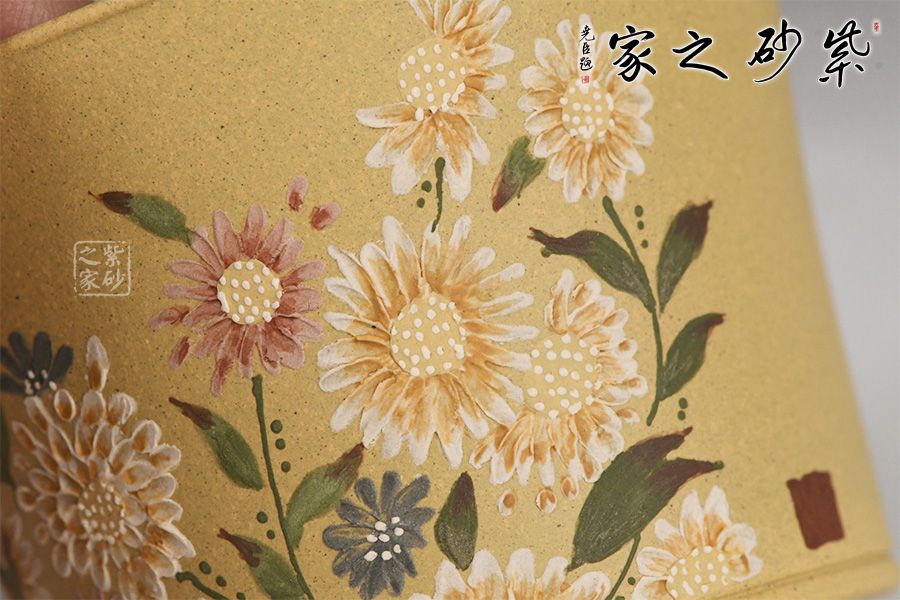 泥性:感甜嫩绵密,质坚而温润,呈近田黄色调,为江苏宜兴赵庄山系朱泥矿~黄石黄之共生矿,经挑拣练製而成,因含铁量只达6%左右,致陶之后呈“金田黄色”。