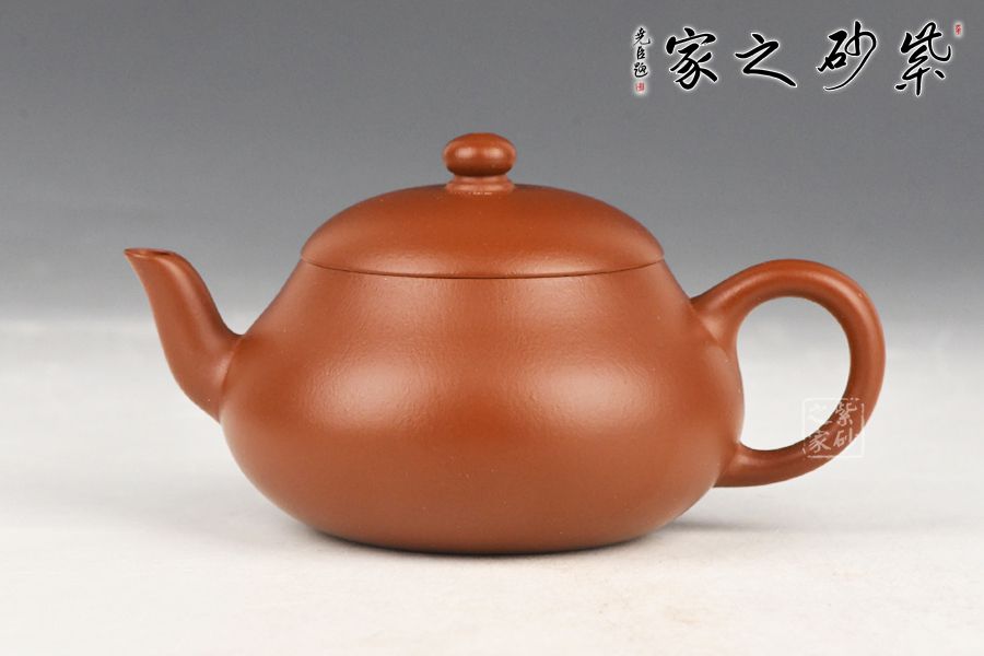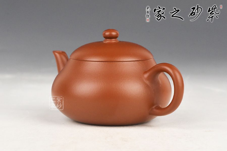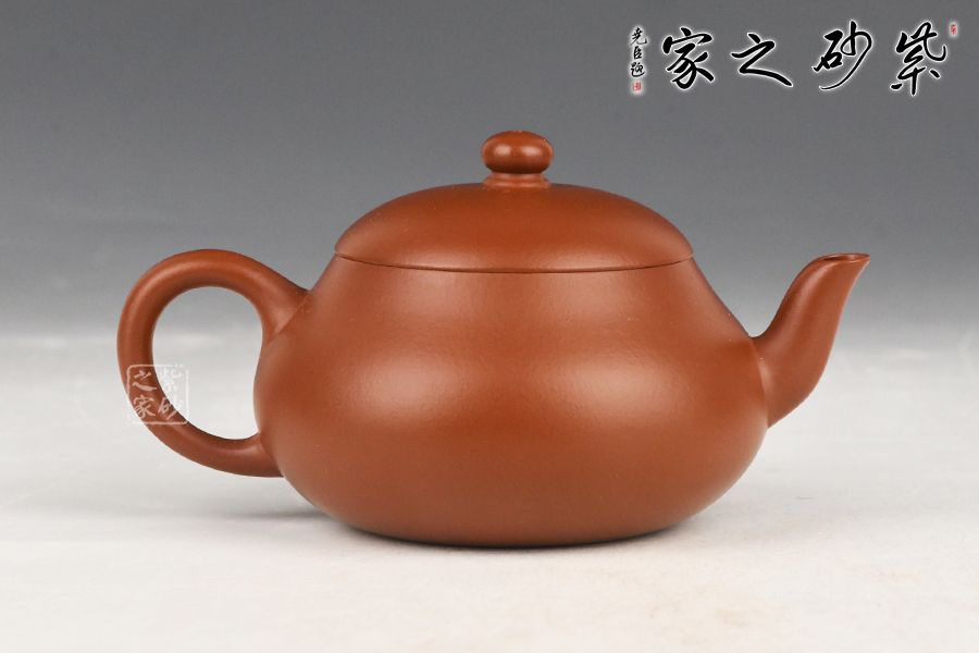 特点:质感绵密、紧实细緻,持之扎实沉重、红润豔丽,泥中极品,无以伦比;泥胚含少许原矿颗粒,冲淋热水后色变极大,呈红中带紫,养壶易现“包浆”之美。