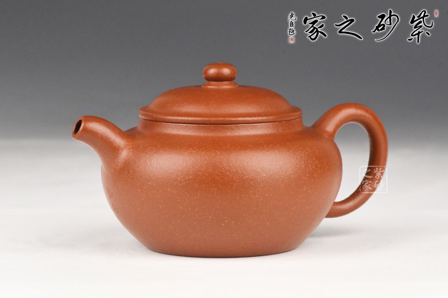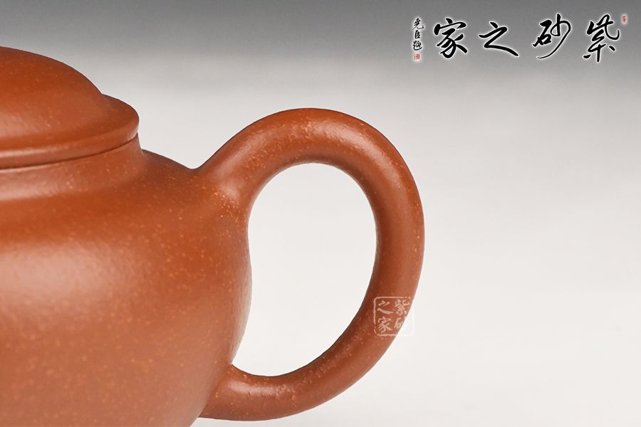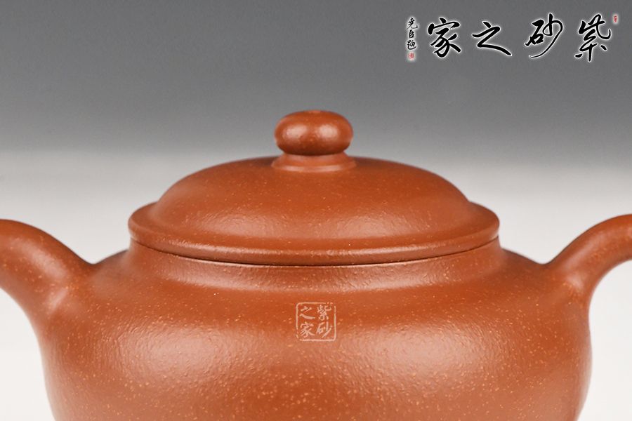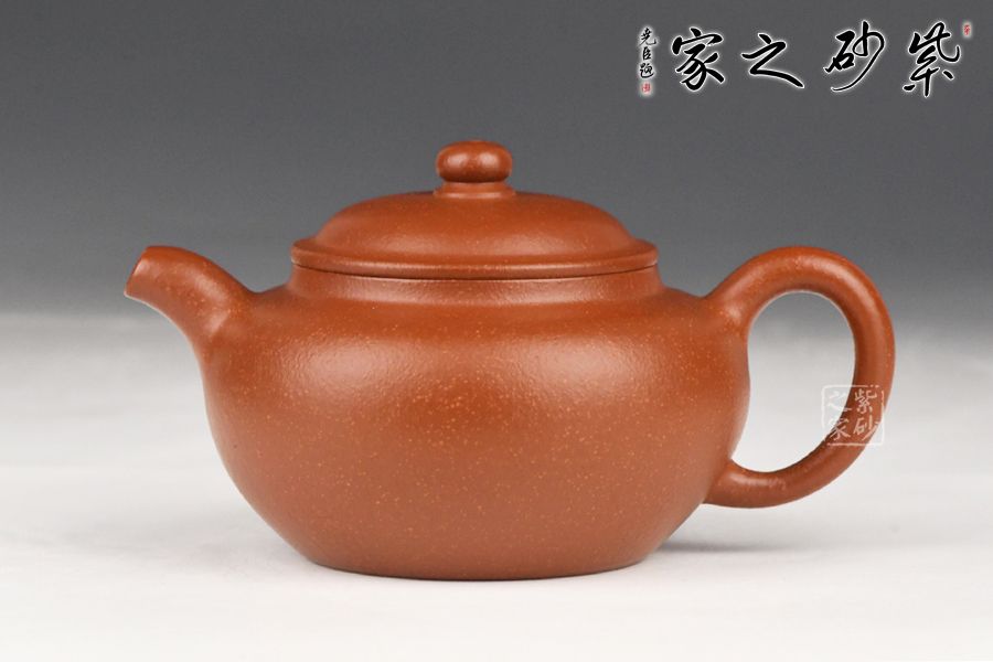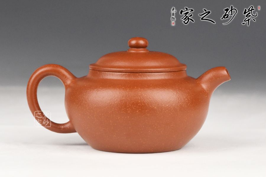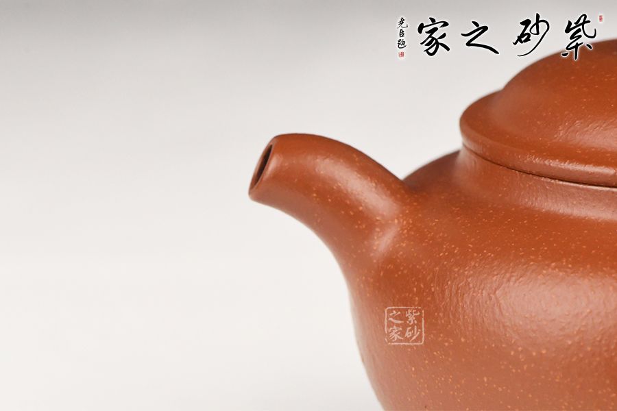 特点:质感绵密、紧实细緻,持之扎实沉重、红润豔丽,泥中极品,无以伦比;泥胚含少许原矿颗粒,冲淋热水后色变极大,呈红中带紫,养壶易现“包浆”之美。