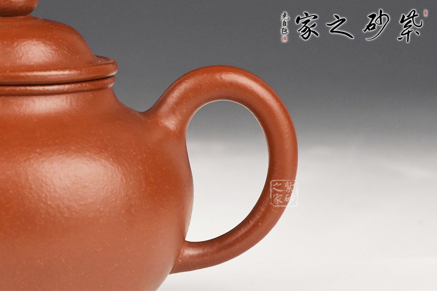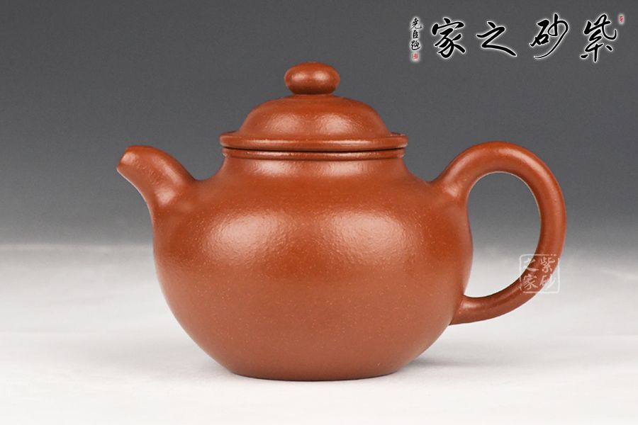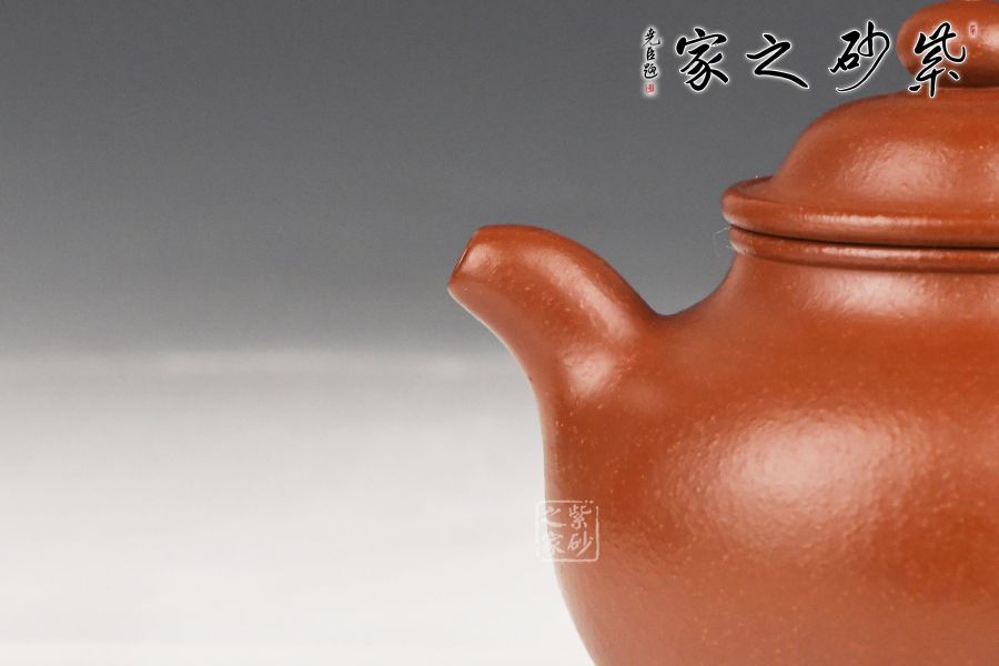 特点:质感绵密、紧实细緻,持之扎实沉重、红润豔丽,泥中极品,无以伦比;泥胚含少许原矿颗粒,冲淋热水后色变极大,呈红中带紫,养壶易现“包浆”之美。