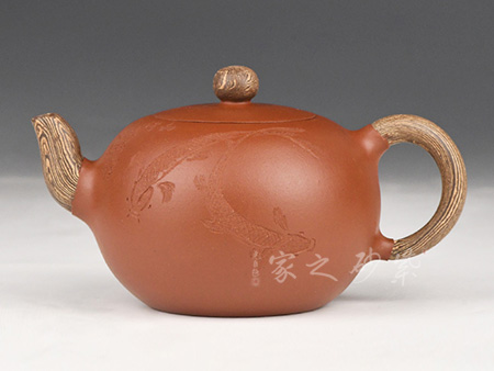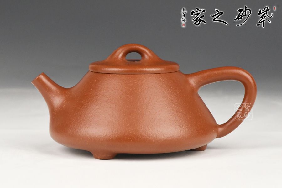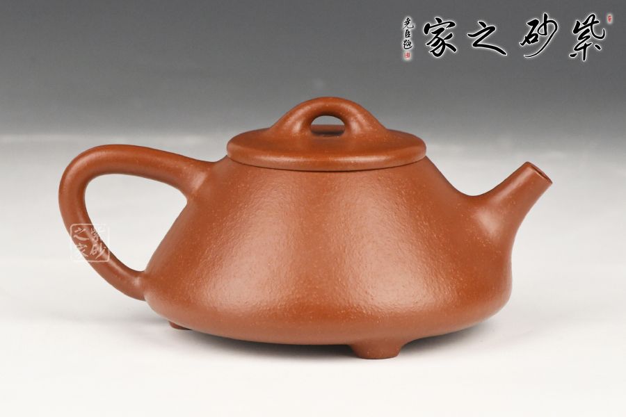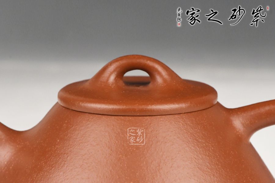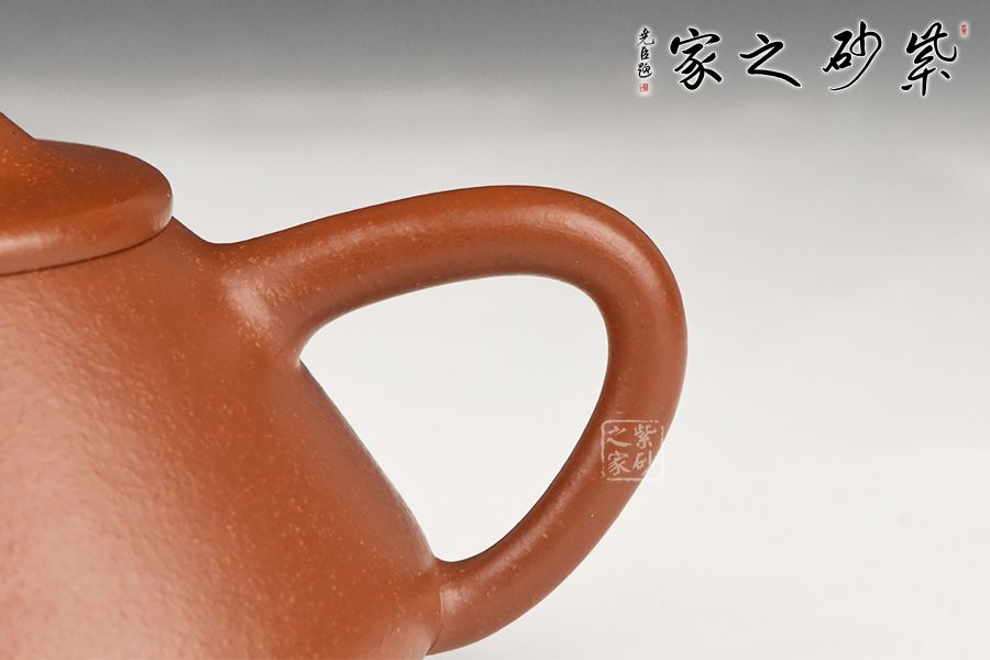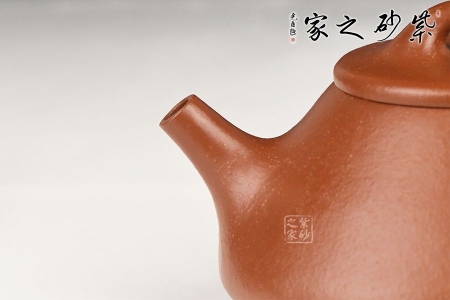 特点:质感绵密、紧实细緻,持之扎实沉重、红润豔丽,泥中极品,无以伦比;泥胚含少许原矿颗粒,冲淋热水后色变极大,呈红中带紫,养壶易现“包浆”之美。