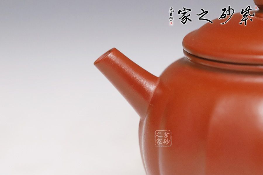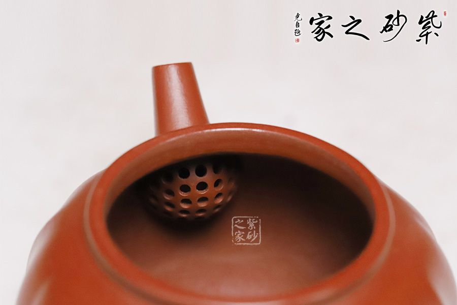 特点:质感绵密、紧实细緻,持之扎实沉重、红润豔丽,泥中极品,无以伦比;泥胚含少许原矿颗粒,冲淋热水后色变极大,呈红中带紫,养壶易现“包浆”之美。