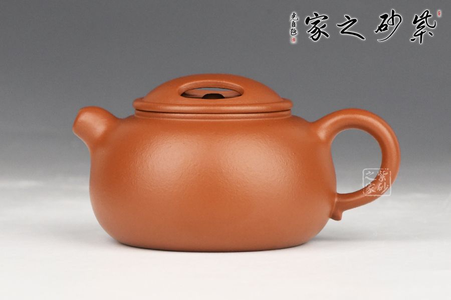 特点:质感绵密、紧实细緻,持之扎实沉重、红润豔丽,泥中极品,无以伦比;泥胚含少许原矿颗粒,冲淋热水后色变极大,呈红中带紫,养壶易现“包浆”之美。